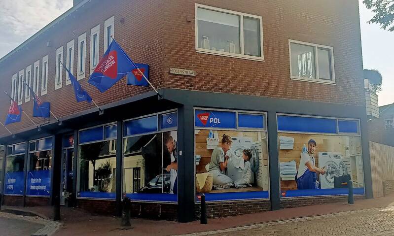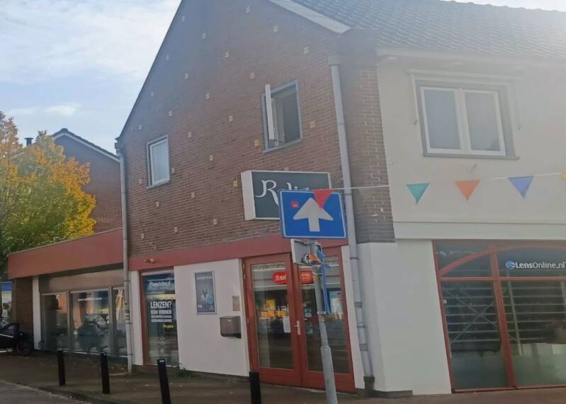 Hoofdstraat Winsum, kijkend vanaf de bocht bij 'Vaslovszky, in de richting van 'Boogplein' en Gouden Karper